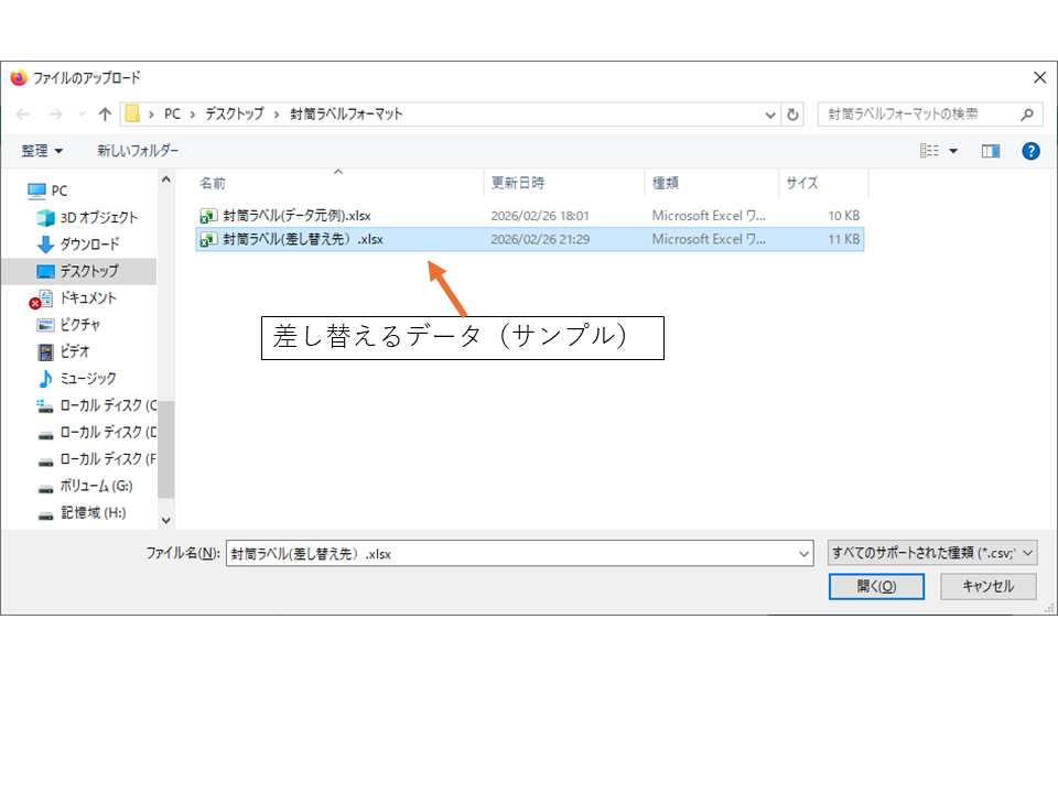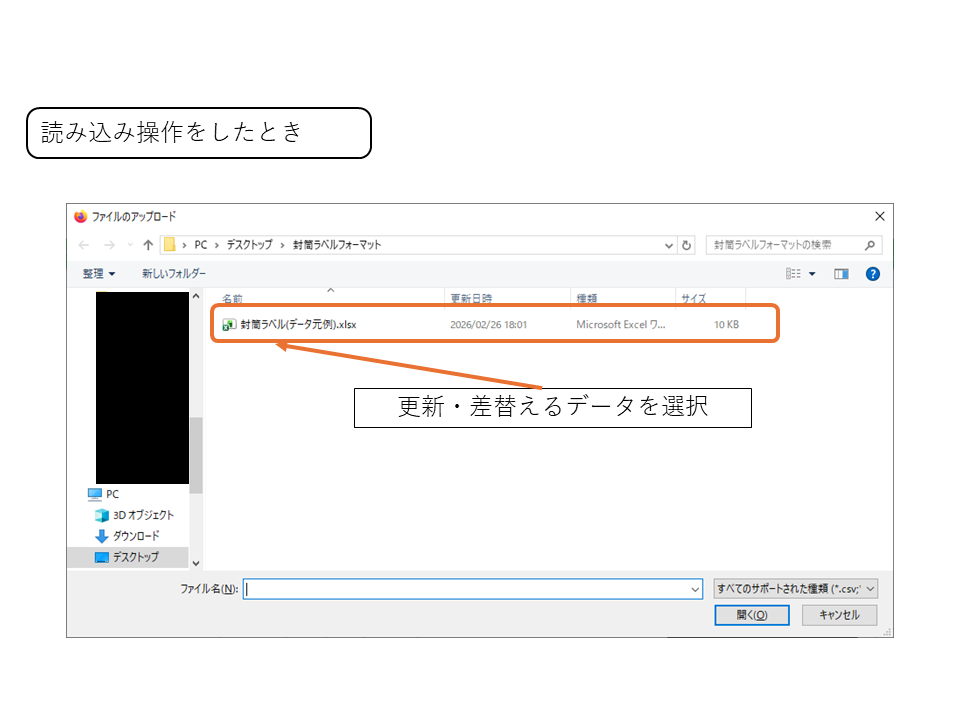 読み込みボタンをすると下記のような画面になって読み込むファイルを選択できます。